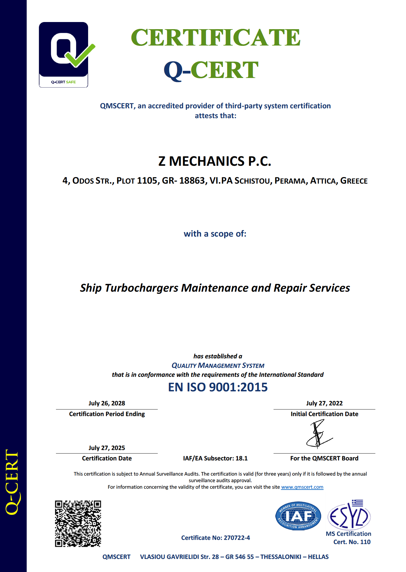We provide full customer support. With Z-mechanics, you can have whichever part needed, among a wide range of turbocharger spare parts that can be sent in a short period of time to any port. At the same time, we provide technical advice and instructions to keep the ships’ engines in the best possible condition, without any loss in performance.